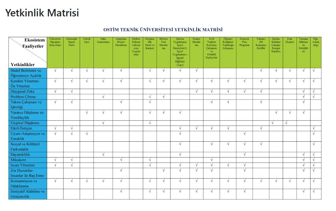 Yetkinlik Matrisi | Kariyer Planlama,iş Başı Eğitim ve Mezunlarla İlişkiler Müdürlüğü